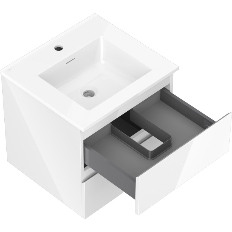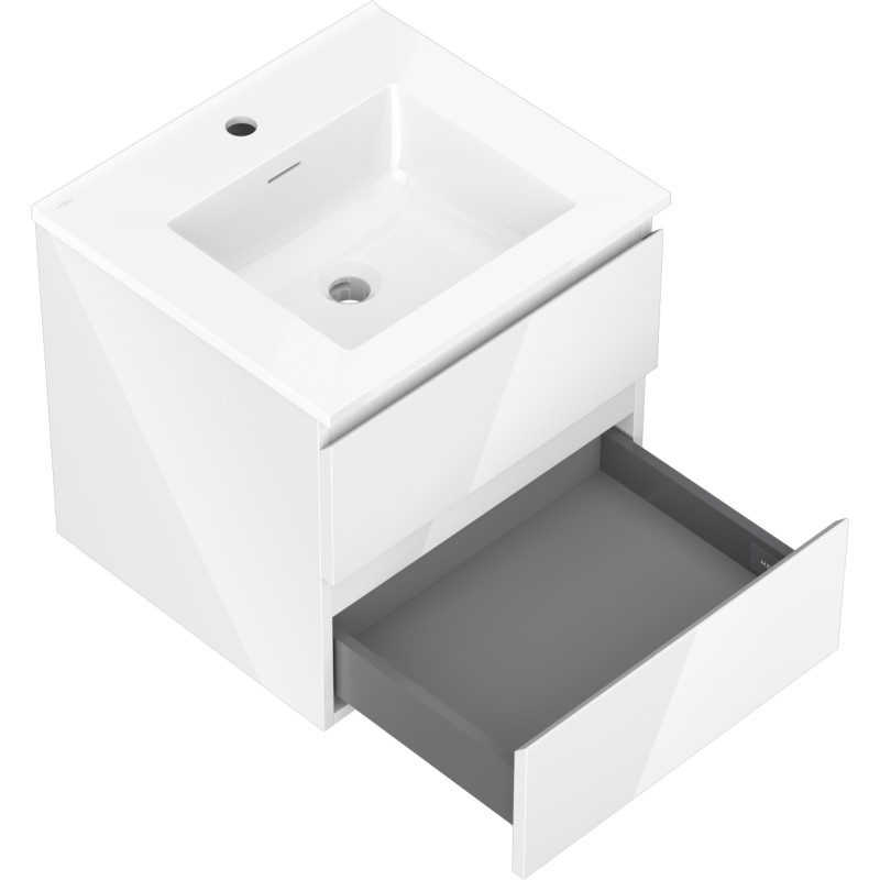 Specifikace produktu: Rozměry skříňky: Šířka: 50 cm Hloubka: 46 cm Výška: 47 cm Barva korpusu: Lesklá bílá Materiál korpusu: Lakovaná deska Barva čela: Lesklá bílá Materiál čela: Lakovaná MDF deska Struktura čela: Hladká Počet zásuvek: 2 Prostorná zásuvka s funkcí tlumeného dovírání Povrch odolný vůči UV záření Rozměry umyvadla: Šířka: 51 cm Hloubka: 46,5 cm Výška: 16,8 cm Barva umyvadla: Lesklá bílá Materiál umyvadla: Konglomerát Otvor pro přepad: Ano Otvor pro baterii: Ano Smontovaný výrobek