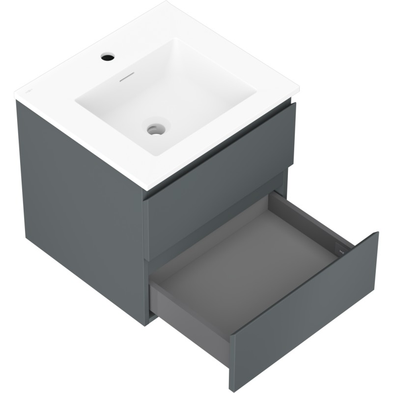 Specifikace produktu: Rozměry skříňky: Šířka: 50 cm Hloubka: 46 cm Výška: 47 cm Barva korpusu: Matný grafit Materiál korpusu: Lakovaná deska Barva čela: Matný grafit Materiál čela: Lakovaná MDF deska Struktura čela: Hladká Počet zásuvek: 2 Prostorná zásuvka s funkcí tlumeného dovírání Povrch odolný vůči UV záření Rozměry umyvadla: Šířka: 51 cm Hloubka: 46,5 cm Výška: 16,5 cm Barva umyvadla: Matná bílá Materiál umyvadla: Konglomerát Otvor pro přepad: Ano Otvor pro baterii: Ano Smontovaný výrobek