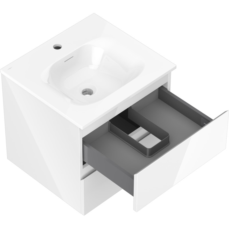 Specifikace produktu: Rozměry skříňky: Šířka: 50 cm Hloubka: 46 cm Výška: 47 cm Barva korpusu: Lesklá bílá Materiál korpusu: Lakovaná deska Barva čela: Lesklá bílá Materiál čela: Lakovaná MDF deska Struktura čela: Hladká Počet zásuvek: 2 Prostorná zásuvka s funkcí tlumeného dovírání Povrch odolný vůči UV záření Rozměry umyvadla: Šířka: 51 cm Hloubka: 46,5 cm Výška: 16,5 cm Barva umyvadla: Lesklá bílá Materiál umyvadla: Konglomerát Otvor pro přepad: Ano Otvor pro baterii: Ano Smontovaný výrobek