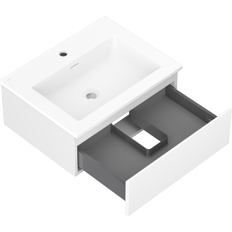 Specifikace produktu: Rozměry skříňky: Šířka: 60 cm Hloubka: 46 cm Výška: 23,5 cm Barva korpusu: Matná bílá Materiál korpusu: Lakovaná deska Barva čela: Matná bílá Materiál čela: Lakovaná MDF deska Struktura čela: Hladká Počet zásuvek: 1 Prostorná zásuvka s funkcí tlumeného dovírání Povrch odolný vůči UV záření Rozměry umyvadla: Šířka: 61 cm Hloubka: 46,5 cm Výška: 16,5 cm Barva umyvadla: Matná bílá Materiál umyvadla: Konglomerát Otvor pro přepad: Ano Otvor pro baterii: Ano Smontovaný výrobek