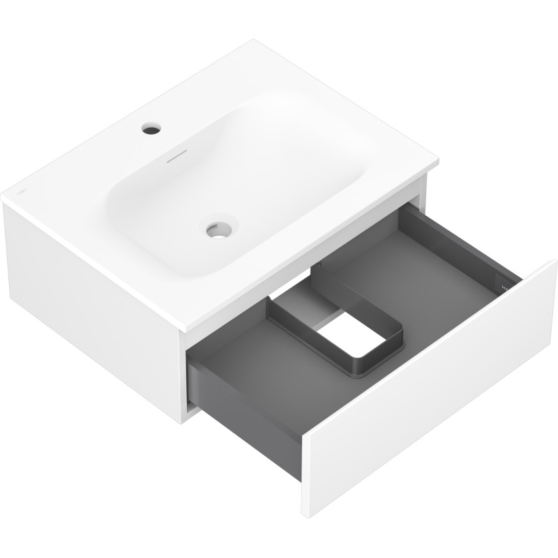 Specifikace produktu: Rozměry skříňky: Šířka: 60 cm Hloubka: 46 cm Výška: 23,5 cm Barva korpusu: Matná bílá Materiál korpusu: Lakovaná deska Barva čela: Matná bílá Materiál čela: Lakovaná MDF deska Struktura čela: Hladká Počet zásuvek: 1 Prostorná zásuvka s funkcí tlumeného dovírání Povrch odolný vůči UV záření Rozměry umyvadla: Šířka: 61 cm Hloubka: 46,5 cm Výška: 16,5 cm Barva umyvadla: Matná bílá Materiál umyvadla: Konglomerát Otvor pro přepad: Ano Otvor pro baterii: Ano Smontovaný výrobek