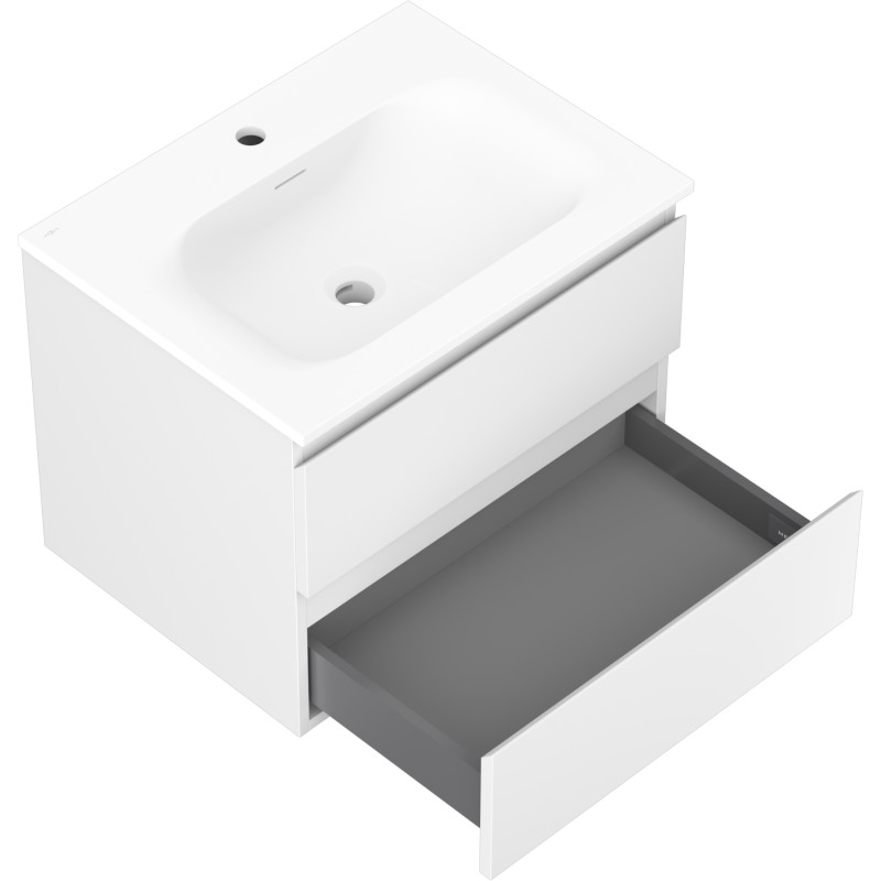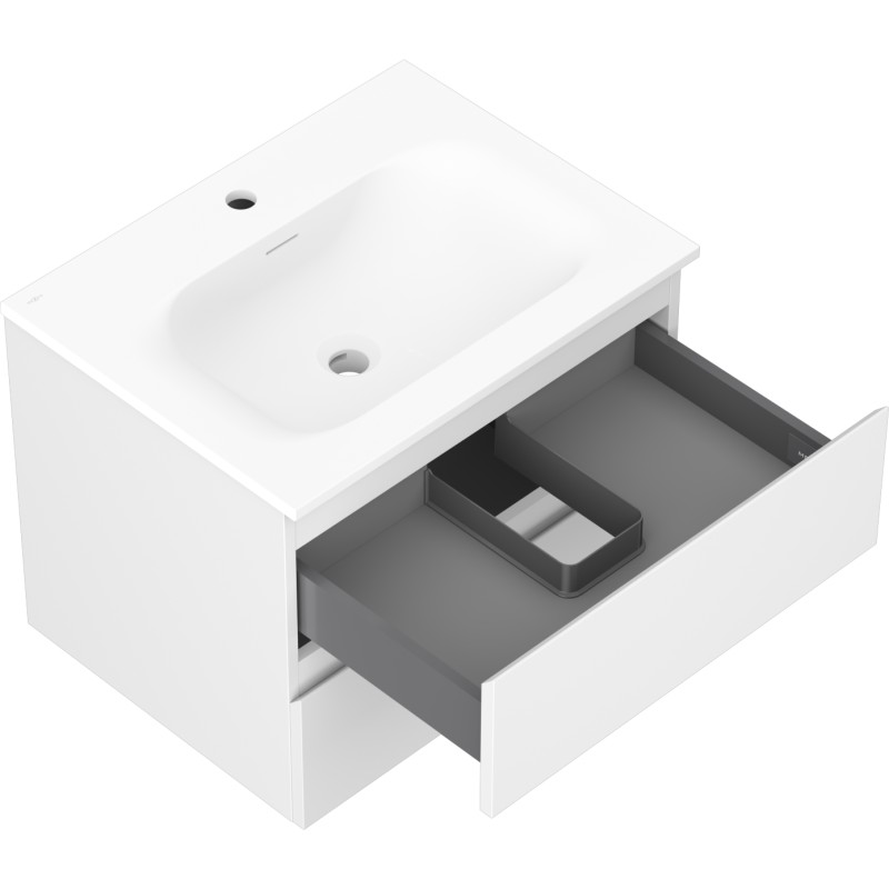 Specifikace produktu: Rozměry skříňky: Šířka: 60 cm Hloubka: 46 cm Výška: 47 cm Barva korpusu: Matná bílá Materiál korpusu: Lakovaná deska Barva čela: Matná bílá Materiál čela: Lakovaná MDF deska Struktura čela: Hladká Počet zásuvek: 2 Prostorná zásuvka s funkcí tlumeného dovírání Povrch odolný vůči UV záření Rozměry umyvadla: Šířka: 61 cm Hloubka: 46,5 cm Výška: 16,5 cm Barva umyvadla: Matná bílá Materiál umyvadla: Konglomerát Otvor pro přepad: Ano Otvor pro baterii: Ano Smontovaný výrobek