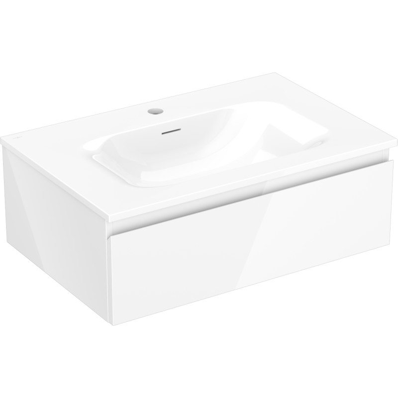 Specifikace produktu: Rozměry skříňky: Šířka: 70 cm Hloubka: 46 cm Výška: 23,5 cm Barva korpusu: Lesklá bílá Materiál korpusu: Lakovaná deska Barva čela: Lesklá bílá Materiál čela: Lakovaná MDF deska Struktura čela: Hladká Počet zásuvek: 1 Prostorná zásuvka s funkcí tichého dovírání Povrch odolný vůči UV záření Rozměry umyvadla: Šířka: 71 cm Hloubka: 46,5 cm Výška: 16,5 cm Barva umyvadla: Lesklá bílá Materiál umyvadla: Konglomerát Otvor pro přepad: Ano Otvor pro baterii: Ano Smontovaný výrobek