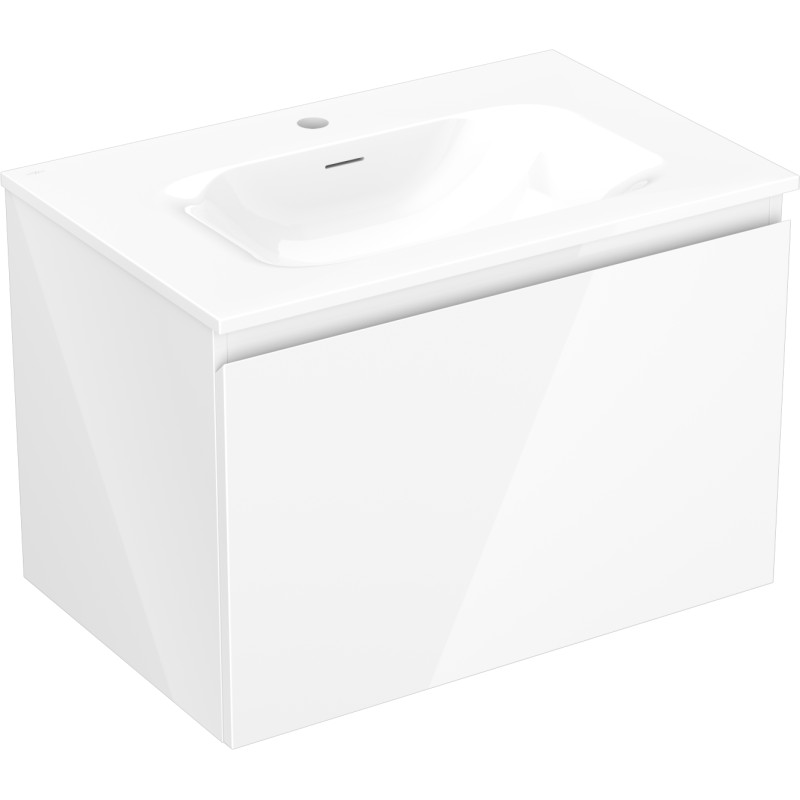 Specifikace produktu: Rozměry skříňky: Šířka: 70 cm Hloubka: 46 cm Výška: 47 cm Barva korpusu: Lesklá bílá Materiál korpusu: Lakovaná deska Barva čela: Lesklá bílá Materiál čela: Lakovaná MDF deska Struktura čela: Hladká Počet zásuvek: 1 Prostorná zásuvka s funkcí tlumeného dovírání Povrch odolný vůči UV záření Rozměry umyvadla: Šířka: 71 cm Hloubka: 46,5 cm Výška: 16,5 cm Barva umyvadla: Lesklá bílá Materiál umyvadla: Konglomerát Otvor pro přepad: Ano Otvor pro baterii: Ano Smontovaný výrobek