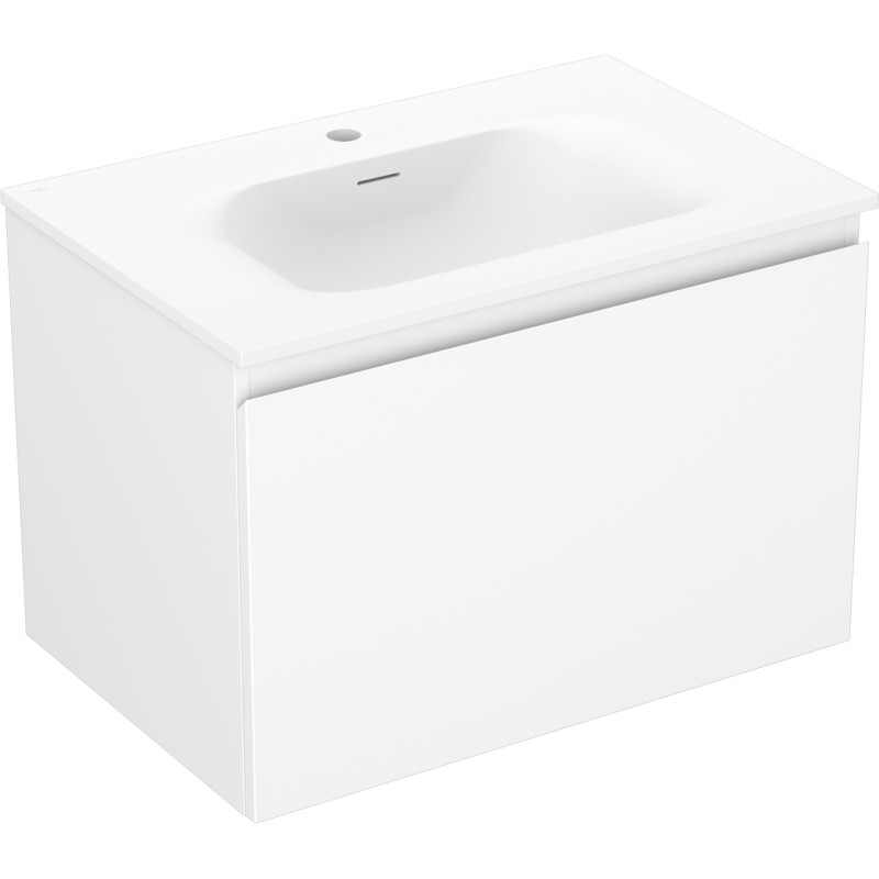 Specifikace produktu: Rozměry skříňky: Šířka: 70 cm Hloubka: 46 cm Výška: 47 cm Barva korpusu: Matná bílá Materiál korpusu: Lakovaná deska Barva čela: Matná bílá Materiál čela: Lakovaná MDF deska Struktura čela: Hladká Počet zásuvek: 1 Prostorná zásuvka s funkcí tlumeného dovírání Povrch odolný vůči UV záření Rozměry umyvadla: Šířka: 71 cm Hloubka: 46,5 cm Výška: 16,5 cm Barva umyvadla: Matná bílá Materiál umyvadla: Konglomerát Otvor pro přepad: Ano Otvor pro baterii: Ano Smontovaný výrobek