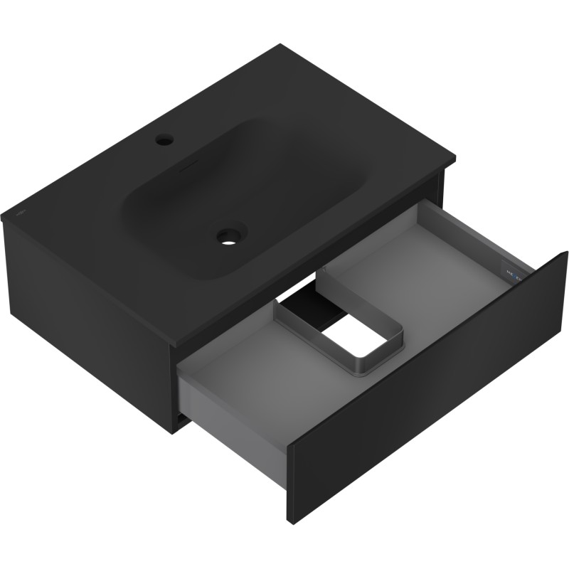 Specifikace produktu: Rozměry skříňky: Šířka: 70 cm Hloubka: 46 cm Výška: 23,5 cm Barva korpusu: Matná černá Materiál korpusu: Lakovaná deska Barva čela: Matná černá Materiál čela: Lakovaná MDF deska Struktura čela: Hladká Počet zásuvek: 1 Prostorná zásuvka s funkcí tichého dovírání Povrch odolný vůči UV záření Rozměry umyvadla: Šířka: 71 cm Hloubka: 46,5 cm Výška: 16,5 cm Barva umyvadla: Matná černá Materiál umyvadla: Konglomerát Otvor pro přepad: Ano Otvor pro baterii: Ano Smontovaný výrobek