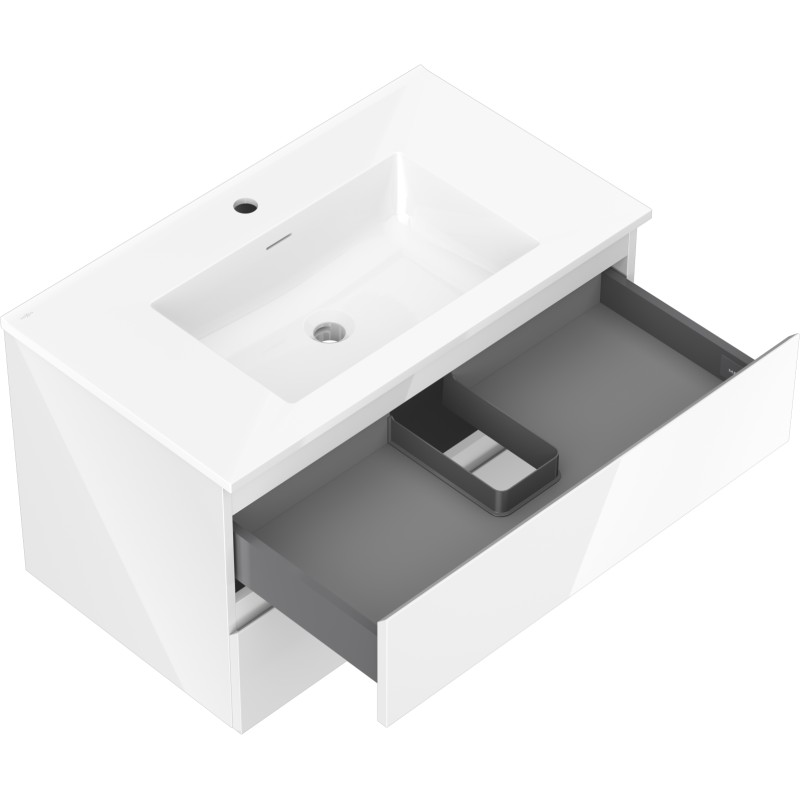 Specifikace produktu: Rozměry skříňky: Šířka: 80 cm Hloubka: 46 cm Výška: 47 cm Barva korpusu: Lesklá bílá Materiál korpusu: Lakovaná deska Barva čela: Lesklá bílá Materiál čela: Lakovaná MDF deska Struktura čela: Hladká Počet zásuvek: 2 Prostorná zásuvka s funkcí tlumeného dovírání Povrch odolný vůči UV záření Rozměry umyvadla: Šířka: 81 cm Hloubka: 46,5 cm Výška: 16,8 cm Barva umyvadla: Lesklá bílá Materiál umyvadla: Konglomerát Otvor pro přepad: Ano Otvor pro baterii: Ano Smontovaný výrobek