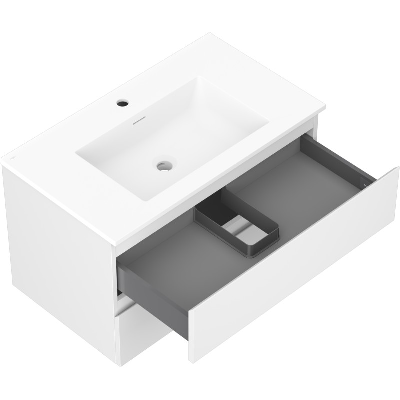 Specifikace produktu: Rozměry skříňky: Šířka: 80 cm Hloubka: 46 cm Výška: 47 cm Barva korpusu: Matná bílá Materiál korpusu: Lakovaná deska Barva čela: Matná bílá Materiál čela: Lakovaná MDF deska Struktura čela: Hladká Počet zásuvek: 2 Prostorná zásuvka s funkcí tichého dovírání Povrch odolný vůči UV záření Rozměry umyvadla: Šířka: 81 cm Hloubka: 46,5 cm Výška: 16,8 cm Barva umyvadla: Matná bílá Materiál umyvadla: Konglomerát Otvor pro přepad: Ano Otvor pro baterii: Ano Smontovaný výrobek