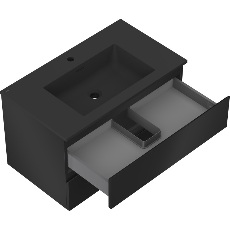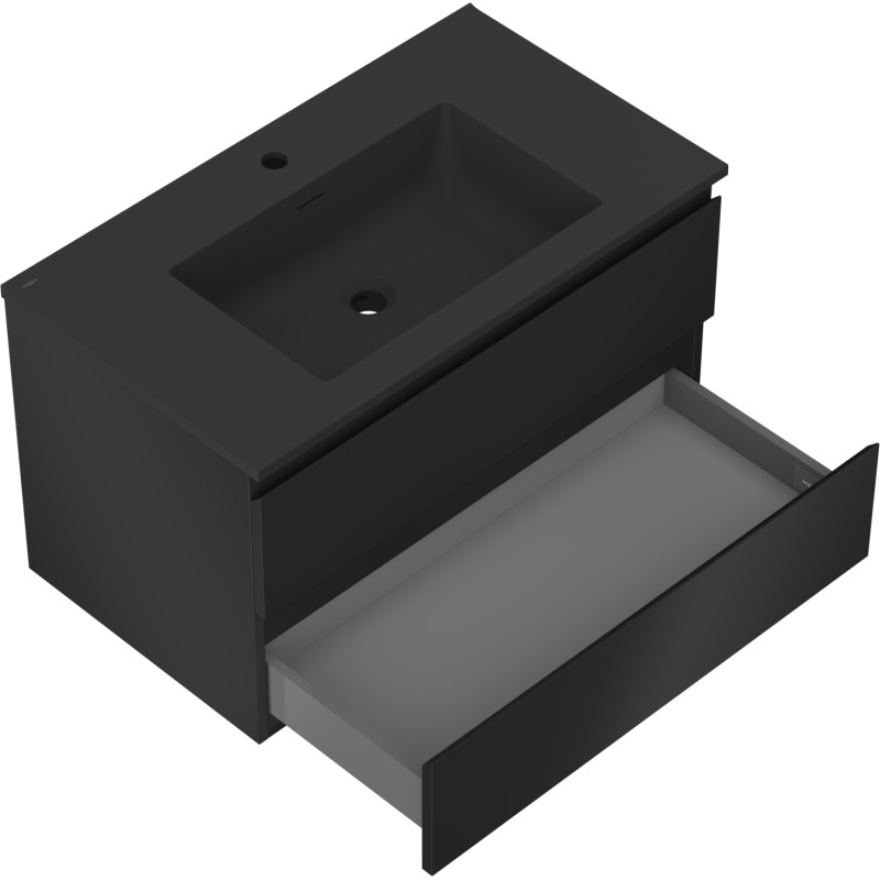 Specifikace produktu: Rozměry skříňky: Šířka: 80 cm Hloubka: 46 cm Výška: 47 cm Barva korpusu: Matná černá Materiál korpusu: Lakovaná deska Barva čela: Matná černá Materiál čela: Lakovaná MDF deska Struktura čela: Hladká Počet zásuvek: 2 Prostorná zásuvka s funkcí tlumeného dovírání Povrch odolný vůči UV záření Rozměry umyvadla: Šířka: 81 cm Hloubka: 46,5 cm Výška: 16,5 cm Barva umyvadla: Matná černá Materiál umyvadla: Konglomerát Otvor pro přepad: Ano Otvor pro baterii: Ano Smontovaný výrobek