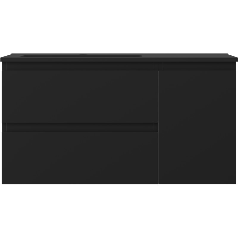 Specifikace produktu: Rozměry skříňky: Šířka: 90 cm Hloubka: 46 cm Výška: 47 cm Sada obsahuje: Zásuvková skříňka pod umyvadlo: Šířka: 60 cm Hloubka: 46 cm Výška: 47 cm Barva korpusu: Matná černá Materiál korpusu: Lakovaná deska Barva čela: Matná černá Materiál čela: Lakovaná MDF deska Struktura čela: Hladká Počet zásuvek: 2 Prostorná zásuvka s funkcí tlumeného dovírání Umyvadlová skříňka s dvířky: Šířka: 30 cm Výška: 47 cm Hloubka: 46 cm Barva korpusu: Matná černá Materiál korpusu: Lakovaná deska Barva čela: Matná černá Materiál čela: Lakovaná MDF deska Struktura čela: Hladká Počet dvířek: 1 1 police Panty s funkcí tlumeného dovírání Univerzální montáž dvířek (levé/pravé) UV odolný povrch Umyvadlo: Šířka: 91 cm Hloubka: 46,5 cm Výška: 16,5 cm Barva umyvadla: Matná černá Materiál umyvadla: Konglomerát Otvor pro přepad: Ano Otvor pro baterii: Ano Smontovaný výrobek