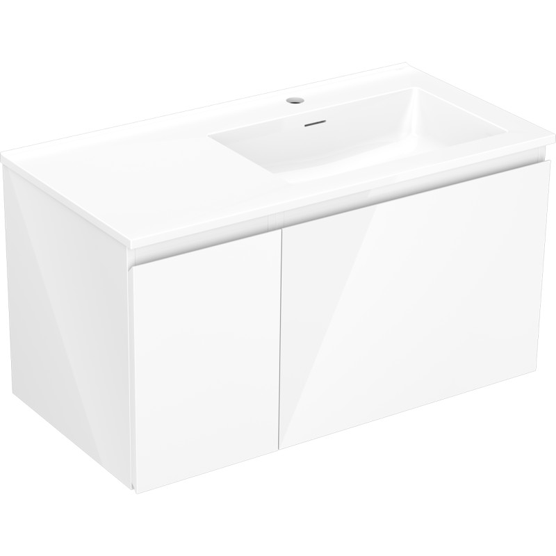 Specifikace produktu: Rozměry skříňky: Šířka: 90 cm Hloubka: 46 cm Výška: 47 cm Sada obsahuje: Zásuvková skříňka pod umyvadlo: Šířka: 60 cm Hloubka: 46 cm Výška: 47 cm Barva korpusu: Bílý lesk Materiál korpusu: Lakovaná deska Barva čela: Bílý lesk Materiál čela: Lakovaná MDF Struktura čela: Hladká Počet zásuvek: 1 Prostorná zásuvka s funkcí tlumeného dovírání Umyvadlová skříňka s dvířky: Šířka: 30 cm Výška: 47 cm Hloubka: 46 cm Barva korpusu: Bílý lesk Materiál korpusu: Lakovaná deska Barva čela: Bílý lesk Materiál čela: Lakovaná MDF Struktura čela: Hladká Počet dvířek: 1 1 police Panty s funkcí tlumeného dovírání Univerzální montáž dvířek (levé/pravé) UV odolný povrch Umyvadlo: Šířka: 91 cm Hloubka: 46,5 cm Výška: 16,5 cm Barva umyvadla: Lesklá bílá Materiál umyvadla: Konglomerát Otvor pro přepad: Ano Otvor pro baterii: Ano Smontovaný výrobek
