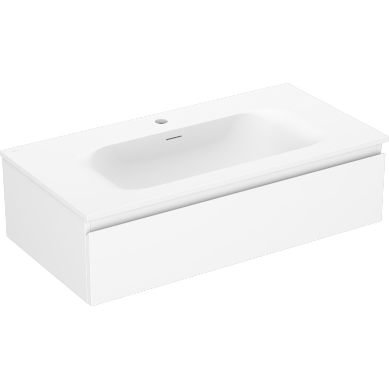 Specifikace produktu: Rozměry skříňky: Šířka: 90 cm Hloubka: 46 cm Výška: 23,5 cm Barva korpusu: Matná bílá Materiál korpusu: Lakovaná deska Barva čela: Matná bílá Materiál čela: Lakovaná MDF deska Struktura čela: Hladká Počet zásuvek: 1 Prostorná zásuvka s funkcí tlumeného dovírání Povrch odolný vůči UV záření Rozměry umyvadla: Šířka: 91 cm Hloubka: 46,5 cm Výška: 16,5 cm Barva umyvadla: Matná bílá Materiál umyvadla: Konglomerát Otvor pro přepad: Ano Otvor pro baterii: Ano Smontovaný výrobek