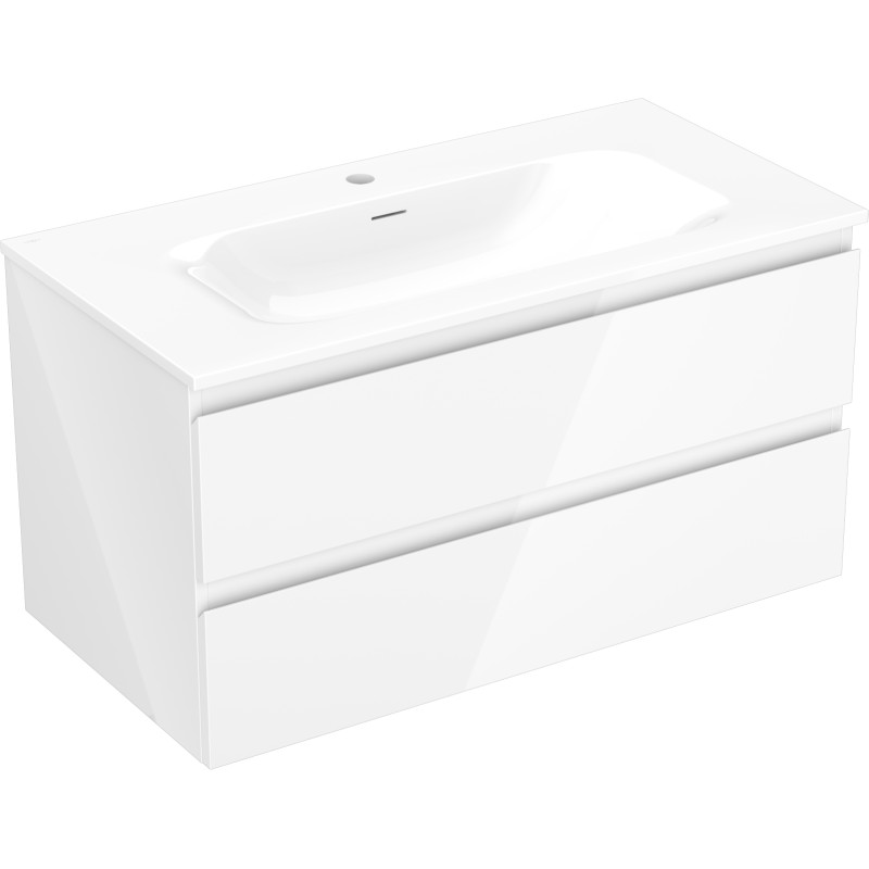 Specifikace produktu: Rozměry skříňky: Šířka: 90 cm Hloubka: 46 cm Výška: 47 cm Barva korpusu: Lesklá bílá Materiál korpusu: Lakovaná deska Barva čela: Lesklá bílá Materiál čela: Lakovaná MDF deska Struktura čela: Hladká Počet zásuvek: 2 Prostorná zásuvka s funkcí tlumeného dovírání Povrch odolný vůči UV záření Rozměry umyvadla: Šířka: 91 cm Hloubka: 46,5 cm Výška: 16,5 cm Barva umyvadla: Lesklá bílá Materiál umyvadla: Konglomerát Otvor pro přepad: Ano Otvor pro baterii: Ano Smontovaný výrobek