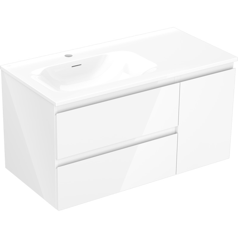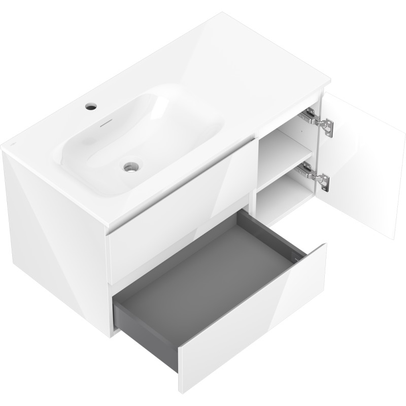 Specifikace produktu: Rozměry skříňky: Šířka: 90 cm Hloubka: 46 cm Výška: 47 cm Sada obsahuje: Zásuvková skříňka pod umyvadlo: Šířka: 60 cm Hloubka: 46 cm Výška: 47 cm Barva korpusu: Bílý lesk Materiál korpusu: Lakovaná deska Barva čela: Bílý lesk Materiál čela: Lakovaná MDF deska Struktura čela: Hladká Počet zásuvek: 2 Prostorná zásuvka s funkcí tlumeného dovírání Povrch odolný proti UV záření Skříňka pod umyvadlo s dvířky: Šířka: 30 cm Výška: 47 cm Hloubka: 46 cm Barva korpusu: Bílý lesk Materiál korpusu: Lakovaná deska Barva čela: Bílý lesk Materiál čela: Lakovaná MDF deska Struktura čela: Hladká Počet dvířek: 1 1 police Panty s funkcí tlumeného dovírání Univerzální montáž dvířek (levé/pravé) Povrch odolný proti UV záření Umyvadlo: Šířka: 91 cm Hloubka: 46,5 cm Výška: 16,5 cm Barva umyvadla: Lesklá bílá Materiál umyvadla: Konglomerát Otvor pro přepad: Ano Otvor pro baterii: Ano Smontovaný produkt