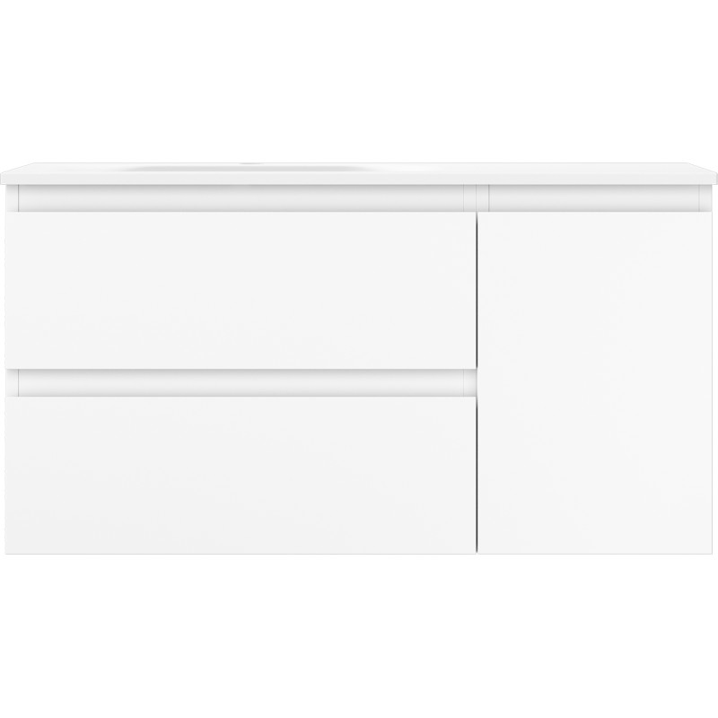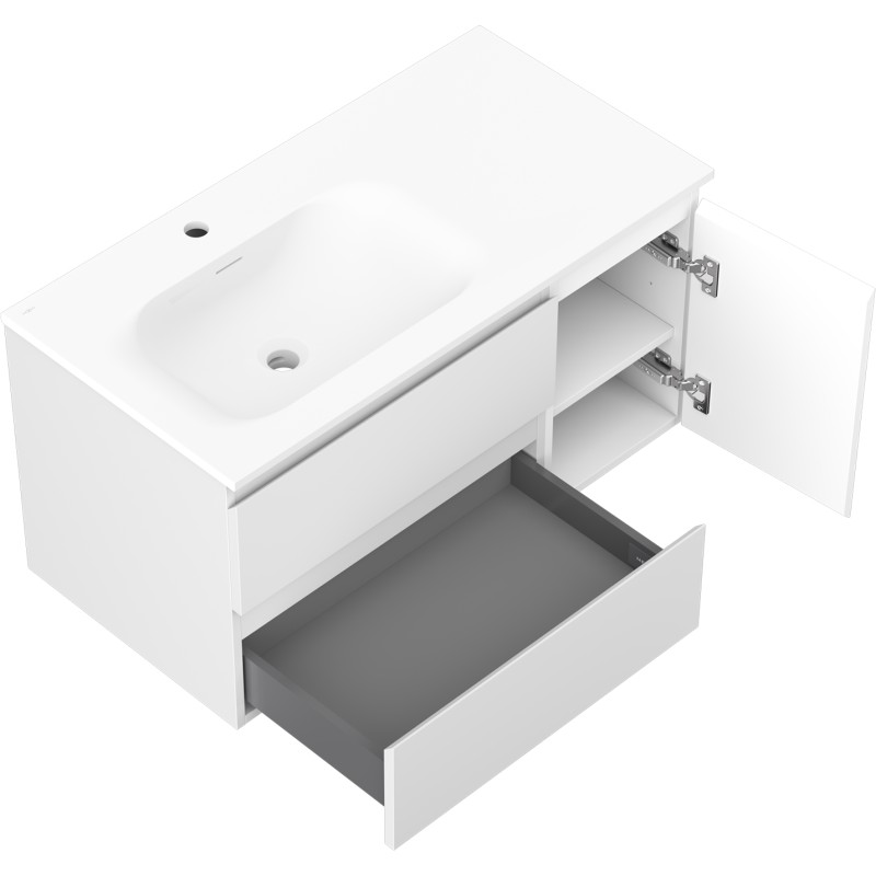 Specifikace produktu: Rozměry skříňky: Šířka: 90 cm Hloubka: 46 cm Výška: 47 cm Sada obsahuje: Zásuvková skříňka pod umyvadlo: Šířka: 60 cm Hloubka: 46 cm Výška: 47 cm Barva korpusu: Matná bílá Materiál korpusu: Lakovaná deska Barva čela: Matná bílá Materiál čela: Lakovaná MDF deska Struktura čela: Hladká Počet zásuvek: 2 Prostorná zásuvka s funkcí tlumeného dovírání Umyvadlová skříňka s dvířky: Šířka: 30 cm Výška: 47 cm Hloubka: 46 cm Barva korpusu: Matná bílá Materiál korpusu: Lakovaná deska Barva čela: Matná bílá Materiál čela: Lakovaná MDF deska Struktura čela: Hladká Počet dvířek: 1 1 police Panty s funkcí tlumeného dovírání Univerzální montáž dvířek (levé/pravé) UV odolný povrch Umyvadlo: Šířka: 91 cm Hloubka: 46,5 cm Výška: 16,5 cm Barva umyvadla: Matná bílá Materiál umyvadla: Konglomerát Otvor pro přepad: Ano Otvor pro baterii: Ano Produkt smontovaný