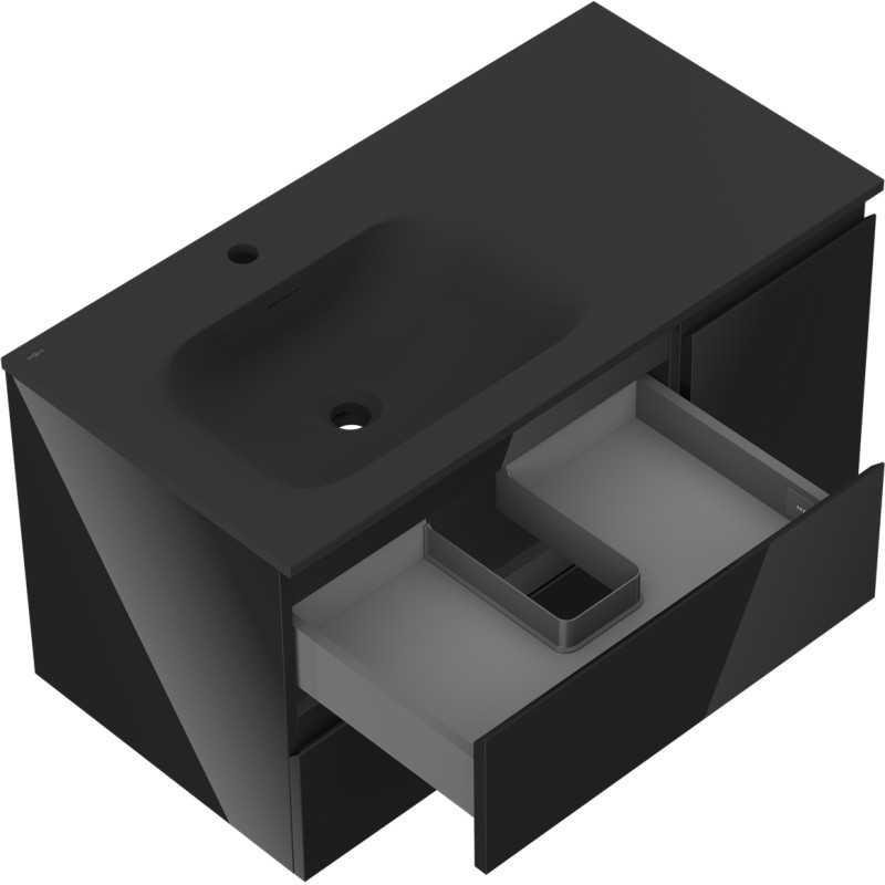 Specifikace produktu: Rozměry skříňky: Šířka: 90 cm Hloubka: 46 cm Výška: 47 cm Sada obsahuje: Zásuvková skříňka pod umyvadlo: Šířka: 60 cm Hloubka: 46 cm Výška: 47 cm Barva korpusu: Černý lesk Materiál korpusu: Lakovaná deska Barva čela: Černý lesk Materiál čela: Lakovaná MDF Struktura čela: Hladká Počet zásuvek: 2 Prostorná zásuvka s funkcí tlumeného dovírání Umyvadlová skříňka s dvířky: Šířka: 30 cm Výška: 47 cm Hloubka: 46 cm Barva korpusu: Černý lesk Materiál korpusu: Lakovaná deska Barva čela: Černý lesk Materiál čela: Lakovaná MDF Struktura čela: Hladká Počet dvířek: 1 1 police Panty s funkcí tlumeného dovírání Univerzální montáž dvířek (levé/pravé) UV odolný povrch Umyvadlo: Šířka: 91 cm Hloubka: 46,5 cm Výška: 16,5 cm Barva umyvadla: Matná černá Materiál umyvadla: Konglomerát Otvor pro přepad: Ano Otvor pro baterii: Ano Výrobek smontovaný