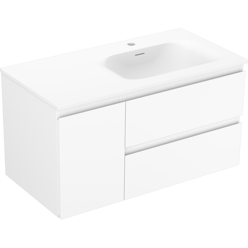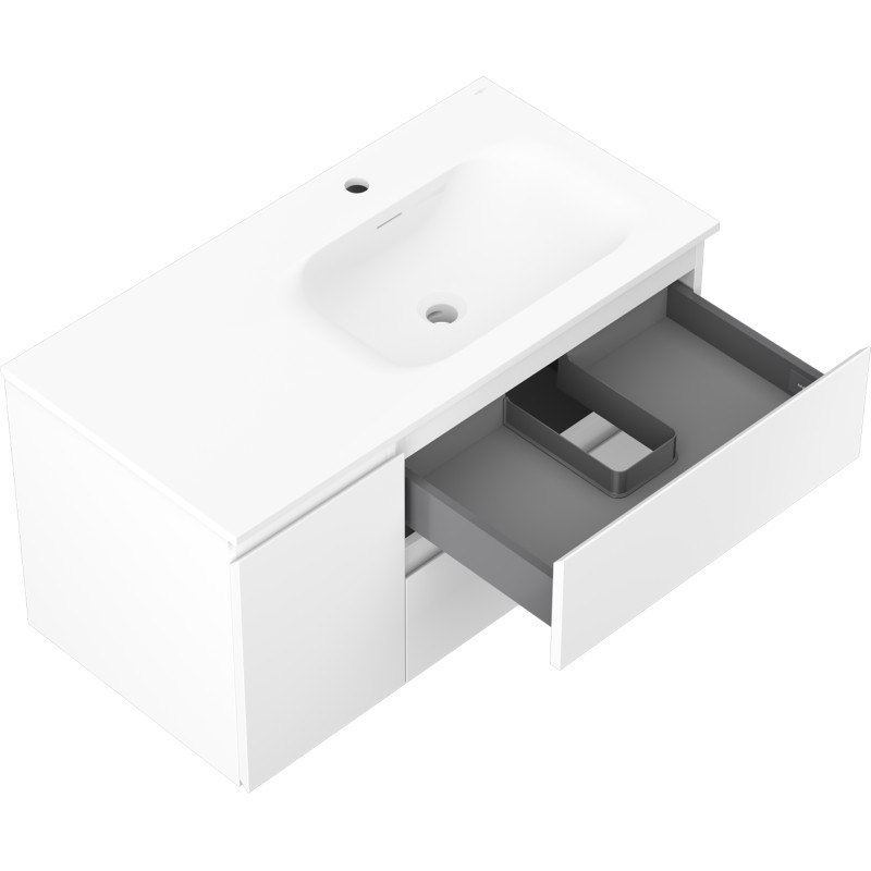 Specifikace produktu: Rozměry skříňky: Šířka: 90 cm Hloubka: 46 cm Výška: 47 cm Sada obsahuje: Zásuvková skříňka pod umyvadlo: Šířka: 60 cm Hloubka: 46 cm Výška: 47 cm Barva korpusu: Matná bílá Materiál korpusu: Lakovaná deska Barva čela: Matná bílá Materiál čela: Lakovaná MDF deska Struktura čela: Hladká Počet zásuvek: 2 Prostorná zásuvka s funkcí tlumeného dovírání Umyvadlová skříňka s dvířky: Šířka: 30 cm Výška: 47 cm Hloubka: 46 cm Barva korpusu: Matná bílá Materiál korpusu: Lakovaná deska Barva čela: Matná bílá Materiál čela: Lakovaná MDF deska Struktura čela: Hladká Počet dvířek: 1 1 police Panty s funkcí tlumeného dovírání Univerzální montáž dvířek (levé/pravé) UV odolný povrch Umyvadlo: Šířka: 91 cm Hloubka: 46,5 cm Výška: 16,5 cm Barva umyvadla: Matná bílá Materiál umyvadla: Konglomerát Otvor pro přepad: Ano Otvor pro baterii: Ano Produkt smontovaný