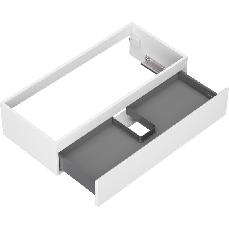 Specifikace produktu: Šířka: 100 cm Výška: 23,5 cm Hloubka: 46 cm Barva korpusu: Matná bílá Materiál korpusu: Lakovaná deska Barva čela: Matná bílá Materiál čela: Lakovaná MDF deska Struktura čela: Hladká Počet zásuvek: 1 Prostorná zásuvka s funkcí tlumeného dovírání Plný výsuv pro snadný přístup k obsahu zásuvky Povrch odolný vůči UV záření Kombinovatelný s pracovní deskou nebo umyvadlem Otis, Vela Smontovaný produkt