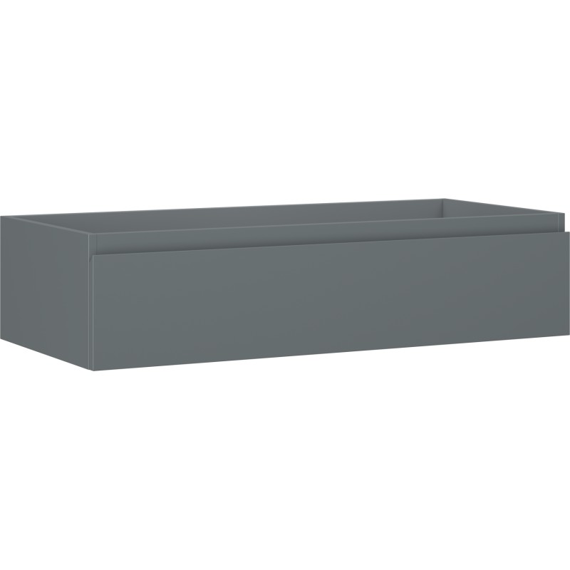 Specifikace produktu: Šířka: 100 cm Výška: 23,5 cm Hloubka: 46 cm Barva korpusu: Matný grafit Materiál korpusu: Lakovaná deska Barva čela: Matný grafit Materiál čela: Lakovaná MDF deska Struktura čela: Hladká Počet zásuvek: 1 Prostorná zásuvka s funkcí tlumeného dovírání Plný výsuv pro snadný přístup k obsahu zásuvky Povrch odolný vůči UV záření Kombinovatelný s pracovní deskou nebo umyvadlem Otis, Vela Sestavený produkt