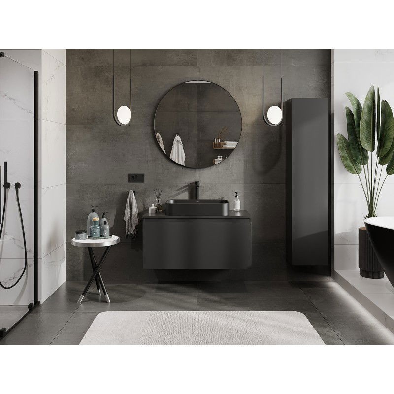 Specifikace produktu: Rozměry skříňky: Šířka: 100 cm Výška: 47 cm Hloubka: 46 cm Barva korpusu: Matná černá Materiál korpusu: Lakovaná deska Barva čela: Matná černá Materiál čela: Lakovaná MDF deska Struktura čela: Hladká Počet zásuvek: 1 Prostorná zásuvka s funkcí tlumeného dovírání Plný výsuv pro snadný přístup k obsahu zásuvky Povrch odolný vůči UV záření Rozměry pracovní desky: Šířka: 100,6 cm Hloubka: 46,5 cm Tloušťka: 1,8 cm Barva pracovní desky: Matná černá Materiál pracovní desky: Lakovaná MDF deska Povrch odolný vůči UV záření Ideální jako podstavec pro umyvadla na desku Sestavený produkt