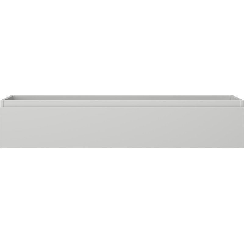 Specifikace produktu: Šířka: 120 cm Výška: 23,5 cm Hloubka: 46 cm Barva korpusu: Matně šedá Materiál korpusu: Lakovaná deska Barva čela: Matně šedá Materiál čela: Lakovaná MDF deska Struktura čela: Hladká Počet zásuvek: 1 Prostorná zásuvka s funkcí tlumeného dovírání Plný výsuv pro snadný přístup k obsahu zásuvky Povrch odolný vůči UV záření Lze doplnit pracovní deskou nebo umyvadlem Otis, Vela Smontovaný produkt