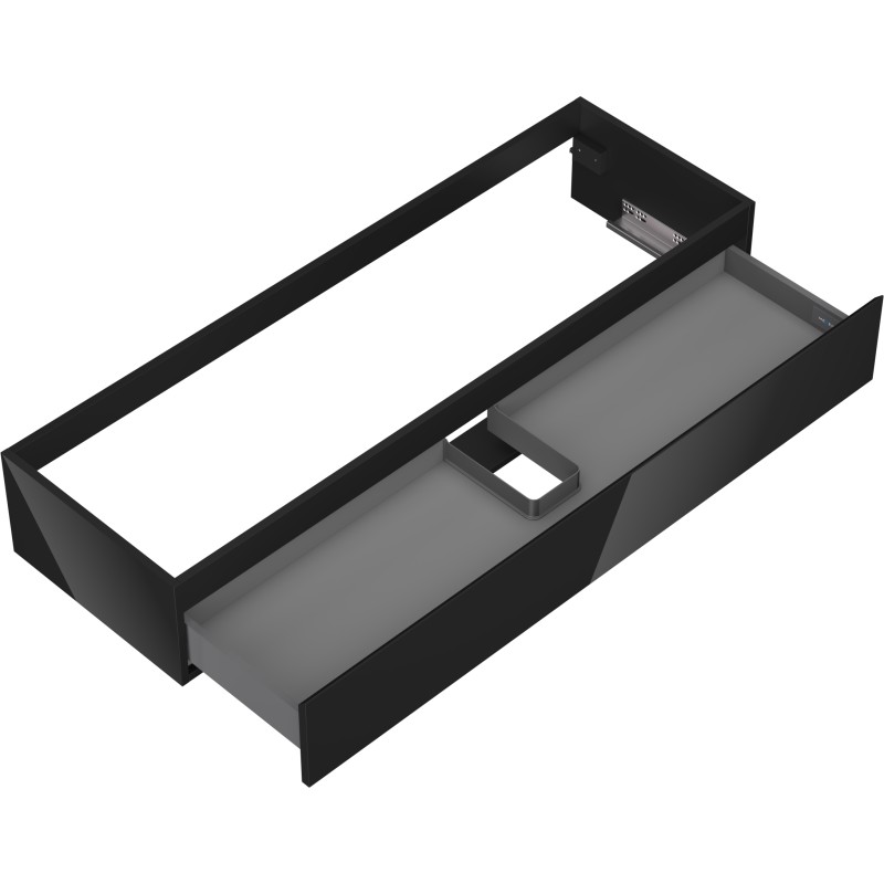 Specifikace produktu: Šířka: 140 cm Výška: 23,5 cm Hloubka: 46 cm Barva korpusu: Lesklá černá Materiál korpusu: Lakovaná deska Barva čela: Lesklá černá Materiál čela: Lakovaná MDF deska Struktura čela: Hladká Počet zásuvek: 1 Prostorná zásuvka s funkcí tlumeného dovírání Plný výsuv pro snadný přístup k obsahu zásuvky Povrch odolný vůči UV záření Kombinovatelný s pracovní deskou nebo umyvadlem Otis, Vela Sestavený produkt