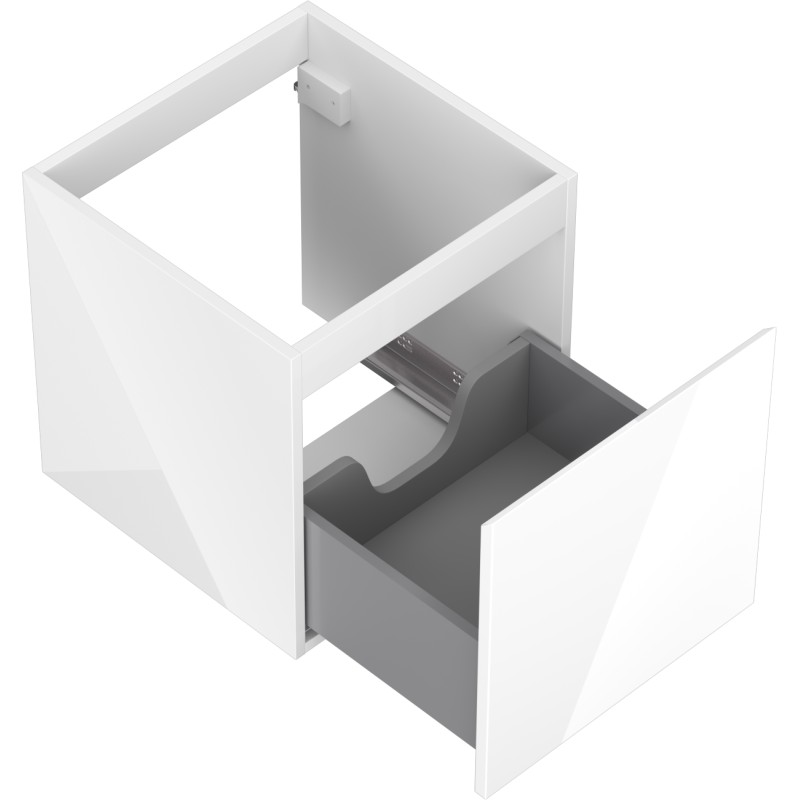 Specifikace produktu: Šířka: 45 cm Výška: 47 cm Hloubka: 46 cm Barva korpusu: Lesklá bílá Materiál korpusu: Lakovaná deska Barva čela: Lesklá bílá Materiál čela: Lakovaná MDF deska Struktura čela: Hladká Počet zásuvek: 1 Prostorná zásuvka s funkcí tlumeného dovírání Plný výsuv pro snadný přístup k obsahu zásuvky Povrch odolný vůči UV záření Kombinovatelný s pracovní deskou nebo umyvadlem Otis, Vela Smontovaný produkt