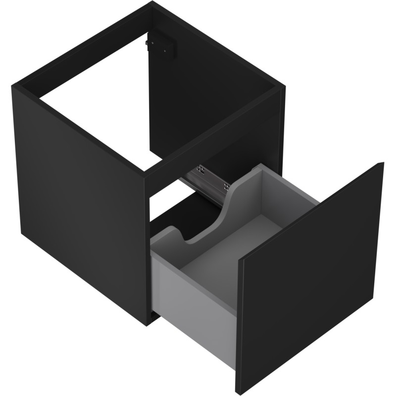 Specifikace produktu: Šířka: 45 cm Výška: 47 cm Hloubka: 46 cm Barva korpusu: Matná černá Materiál korpusu: Lakovaná deska Barva čela: Matná černá Materiál čela: Lakovaná MDF deska Struktura čela: Hladká Počet zásuvek: 1 Prostorná zásuvka s funkcí tlumeného dovírání Plný výsuv pro snadný přístup k obsahu zásuvky Povrch odolný vůči UV záření Kombinovatelný s pracovní deskou nebo umyvadlem Otis, Vela Smontovaný produkt
