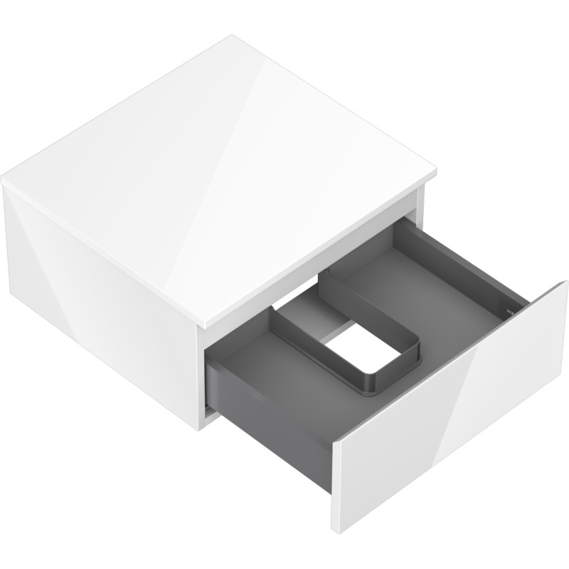 Specifikace produktu: Rozměry skříňky: Šířka: 50 cm Výška: 23,5 cm Hloubka: 46 cm Barva korpusu: Lesklá bílá Materiál korpusu: Lakovaná deska Barva čela: Lesklá bílá Materiál čela: Lakovaná MDF deska Struktura čela: Hladká Počet zásuvek: 1 Prostorná zásuvka s funkcí tlumeného dovírání Plný výsuv pro snadný přístup k obsahu zásuvky Povrch odolný vůči UV záření Rozměry pracovní desky: Šířka: 50,6 cm Hloubka: 46,5 cm Tloušťka: 1,8 cm Barva pracovní desky: Lesklá bílá Materiál pracovní desky: Lakovaná MDF deska Povrch odolný vůči UV záření Ideální jako podstavec pro umyvadla na desku Sestavený produkt