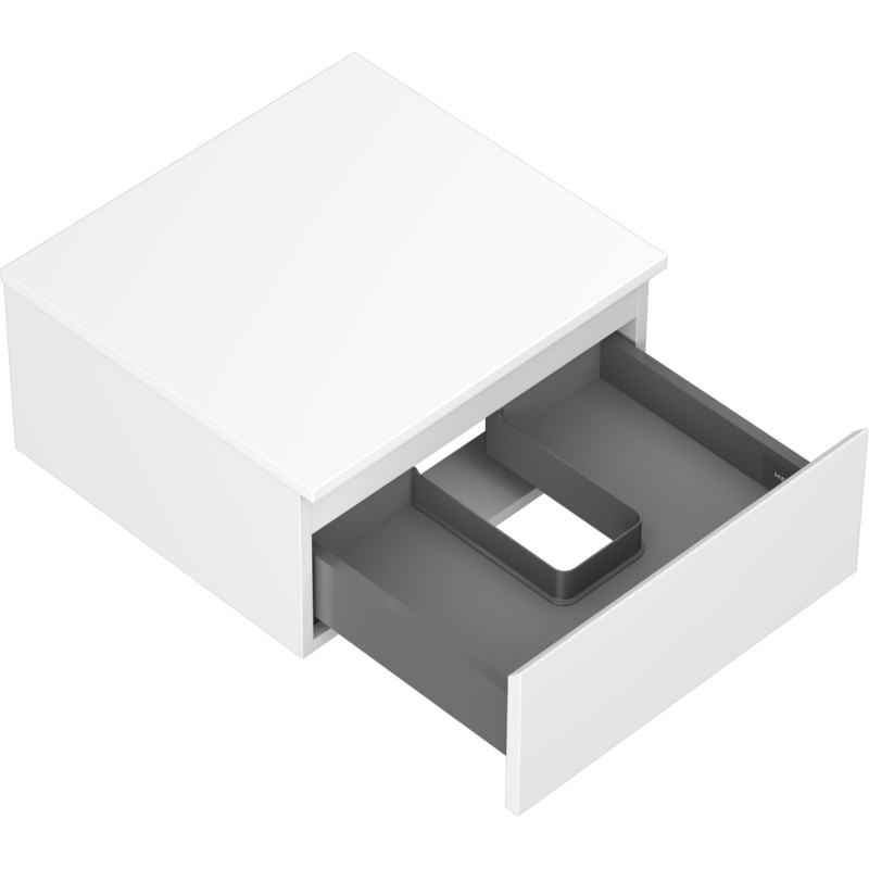 Specifikace produktu: Rozměry skříňky: Šířka: 50 cm Výška: 23,5 cm Hloubka: 46 cm Barva korpusu: Matná bílá Materiál korpusu: Lakovaná deska Barva čela: Matná bílá Materiál čela: Lakovaná MDF deska Struktura čela: Hladká Počet zásuvek: 1 Prostorná zásuvka s funkcí tlumeného dovírání Plný výsuv pro snadný přístup k obsahu zásuvky Povrch odolný vůči UV záření Rozměry pracovní desky: Šířka: 50,6 cm Hloubka: 46,5 cm Tloušťka: 1,8 cm Barva pracovní desky: Matná bílá Materiál pracovní desky: Lakovaná MDF deska Povrch odolný vůči UV záření Ideální jako podstavec pro umyvadla na desku Sestavený produkt