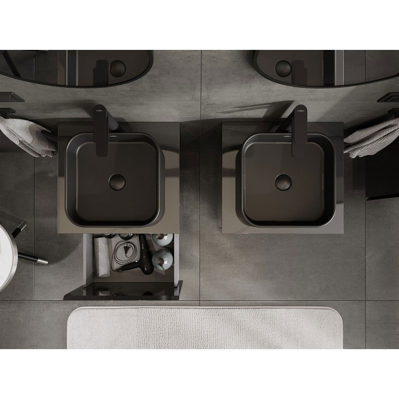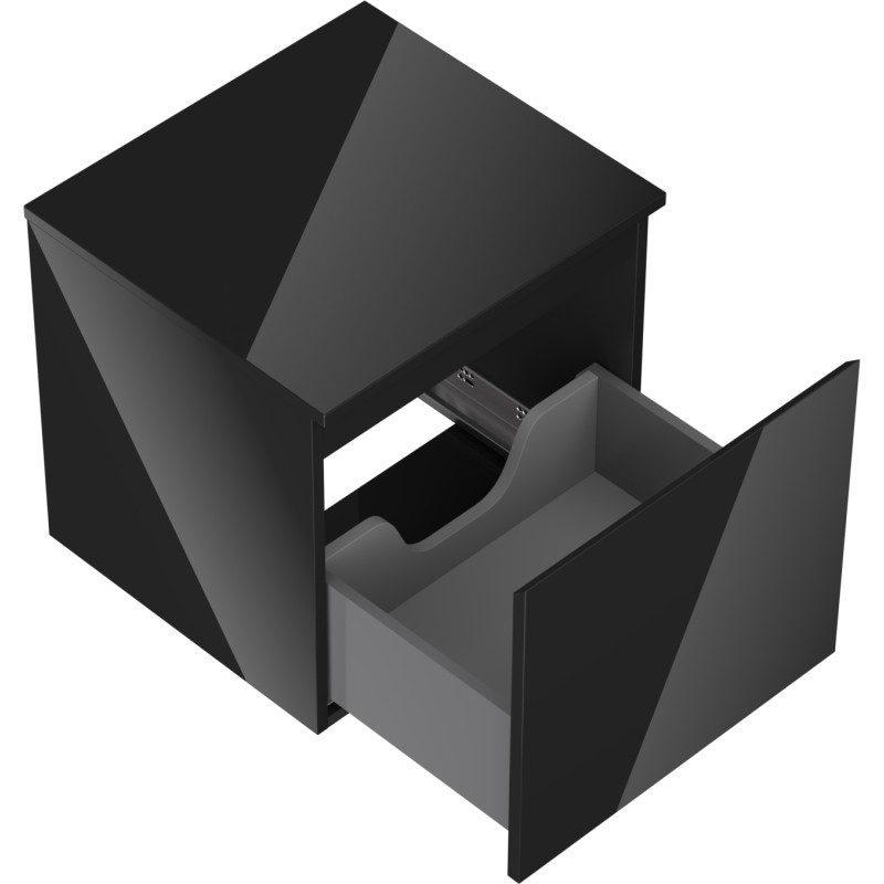 Specifikace produktu: Rozměry skříňky: Šířka: 50 cm Výška: 47 cm Hloubka: 46 cm Barva korpusu: Černá lesklá Materiál korpusu: Lakovaná deska Barva čela: Černá lesklá Materiál čela: Lakovaná MDF deska Struktura čela: Hladká Počet zásuvek: 1 Prostorná zásuvka s funkcí tichého dovírání Plný výsuv pro snadný přístup k obsahu zásuvky Povrch odolný vůči UV záření Rozměry pracovní desky: Šířka: 50,6 cm Hloubka: 46,5 cm Tloušťka: 1,8 cm Barva pracovní desky: Černá lesklá Materiál pracovní desky: Lakovaná MDF deska Povrch odolný vůči UV záření Ideální jako podstavec pro umyvadla na desku Sestavený produkt