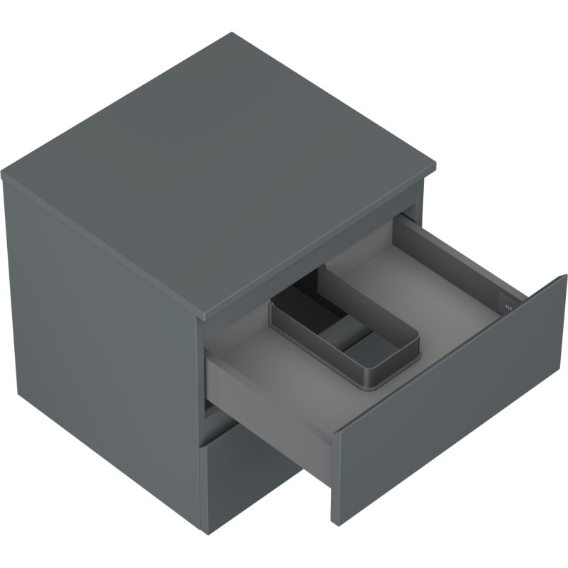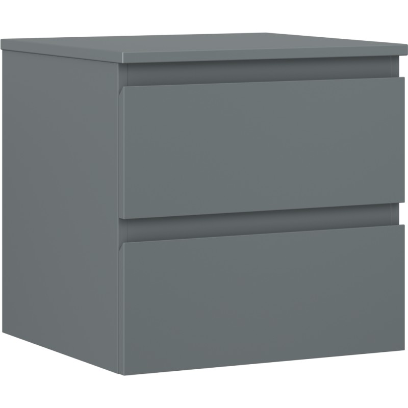 Specifikace produktu: Rozměry skříňky: Šířka: 50 cm Výška: 47 cm Hloubka: 46 cm Barva korpusu: Matný grafit Materiál korpusu: Lakovaná deska Barva čela: Matný grafit Materiál čela: Lakovaná MDF deska Struktura čela: Hladká Počet zásuvek: 2 Prostorná zásuvka s funkcí tlumeného dovírání Plný výsuv pro snadný přístup k obsahu zásuvky Povrch odolný vůči UV záření Rozměry pracovní desky: Šířka: 50,6 cm Hloubka: 46,5 cm Tloušťka: 1,8 cm Barva pracovní desky: Matný grafit Materiál pracovní desky: Lakovaná MDF deska Povrch odolný vůči UV záření Ideální jako podstavec pro umyvadla na desku Sestavený produkt