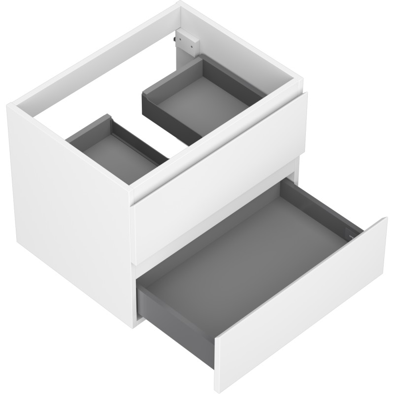 Specifikace produktu: Šířka: 60 cm Výška: 47 cm Hloubka: 46 cm Barva korpusu: Matná bílá Materiál korpusu: Lakovaná deska Barva čela: Matná bílá Materiál čela: Lakovaná MDF deska Struktura čela: Hladká Počet zásuvek: 2 Prostorná zásuvka s funkcí tlumeného dovírání Plný výsuv pro snadný přístup k obsahu zásuvky Povrch odolný vůči UV záření Kombinovatelný s pracovní deskou nebo umyvadlem Otis, Vela Smontovaný produkt