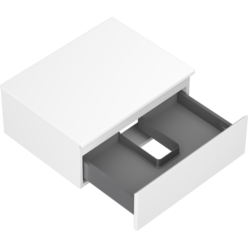 Specifikace produktu: Rozměry skříňky: Šířka: 60 cm Výška: 23,5 cm Hloubka: 46 cm Barva korpusu: Matná bílá Materiál korpusu: Lakovaná deska Barva čela: Matná bílá Materiál čela: Lakovaná MDF deska Struktura čela: Hladká Počet zásuvek: 1 Prostorná zásuvka s funkcí tlumeného dovírání Plný výsuv pro snadný přístup k obsahu zásuvky Povrch odolný vůči UV záření Rozměry pracovní desky: Šířka: 60,6 cm Hloubka: 46,5 cm Tloušťka: 1,8 cm Barva pracovní desky: Matná bílá Materiál pracovní desky: Lakovaná MDF deska Povrch odolný vůči UV záření Ideální jako podstavec pro umyvadla na desku Sestavený produkt
