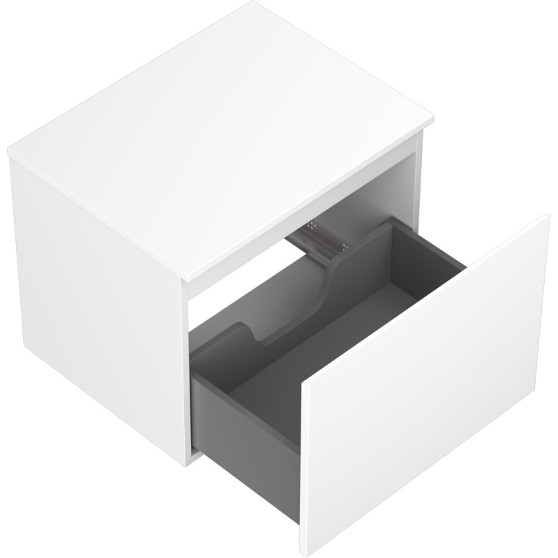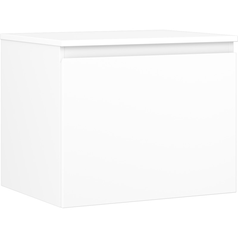 Specifikace produktu: Rozměry skříňky: Šířka: 60 cm Výška: 47 cm Hloubka: 46 cm Barva korpusu: Matná bílá Materiál korpusu: Lakovaná deska Barva čela: Matná bílá Materiál čela: Lakovaná MDF deska Struktura čela: Hladká Počet zásuvek: 1 Prostorná zásuvka s funkcí tlumeného dovírání Plný výsuv pro snadný přístup k obsahu zásuvky Povrch odolný vůči UV záření Rozměry pracovní desky: Šířka: 60,6 cm Hloubka: 46,5 cm Tloušťka: 1,8 cm Barva pracovní desky: Matná bílá Materiál pracovní desky: Lakovaná MDF deska Povrch odolný vůči UV záření Ideální jako podstavec pro umyvadla na desku Sestavený produkt
