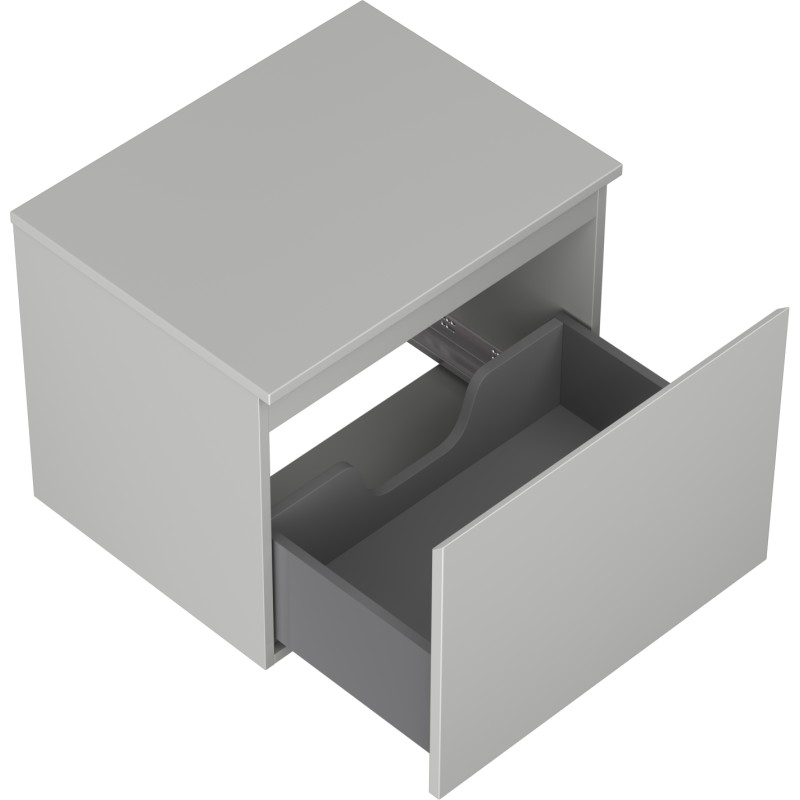 Specifikace produktu: Rozměry skříňky: Šířka: 60 cm Výška: 47 cm Hloubka: 46 cm Barva korpusu: Matně šedá Materiál korpusu: Lakovaná deska Barva čela: Matně šedá Materiál čela: Lakovaná MDF deska Struktura čela: Hladká Počet zásuvek: 1 Prostorná zásuvka s funkcí tlumeného dovírání Plný výsuv pro snadný přístup k obsahu zásuvky Povrch odolný vůči UV záření Rozměry pracovní desky: Šířka: 60,6 cm Hloubka: 46,5 cm Tloušťka: 1,8 cm Barva pracovní desky: Matně šedá Materiál pracovní desky: Lakovaná MDF deska Povrch odolný vůči UV záření Ideální jako podstavec pro umyvadla na desku Sestavený produkt