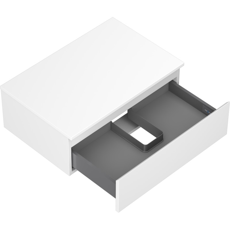Specifikace produktu: Rozměry skříňky: Šířka: 70 cm Výška: 23,5 cm Hloubka: 46 cm Barva korpusu: Matná bílá Materiál korpusu: Lakovaná deska Barva čela: Matná bílá Materiál čela: Lakovaná MDF deska Struktura čela: Hladká Počet zásuvek: 1 Prostorná zásuvka s funkcí tlumeného dovírání Plný výsuv pro snadný přístup k obsahu zásuvky Povrch odolný vůči UV záření Rozměry pracovní desky: Šířka: 70,6 cm Hloubka: 46,5 cm Tloušťka: 1,8 cm Barva pracovní desky: Matná bílá Materiál pracovní desky: Lakovaná MDF deska Povrch odolný vůči UV záření Ideální jako podstavec pro umyvadla na desku Sestavený produkt