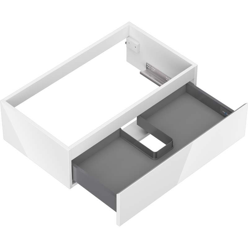 Specifikace produktu: Šířka: 80 cm Výška: 23,5 cm Hloubka: 46 cm Barva korpusu: Lesklá bílá Materiál korpusu: Lakovaná deska Barva čela: Lesklá bílá Materiál čela: Lakovaná MDF deska Struktura čela: Hladká Počet zásuvek: 1 Prostorná zásuvka s funkcí tlumeného dovírání Plný výsuv pro snadný přístup k obsahu zásuvky Povrch odolný vůči UV záření Lze doplnit pracovní deskou nebo umyvadlem Otis, Vela Smontovaný produkt