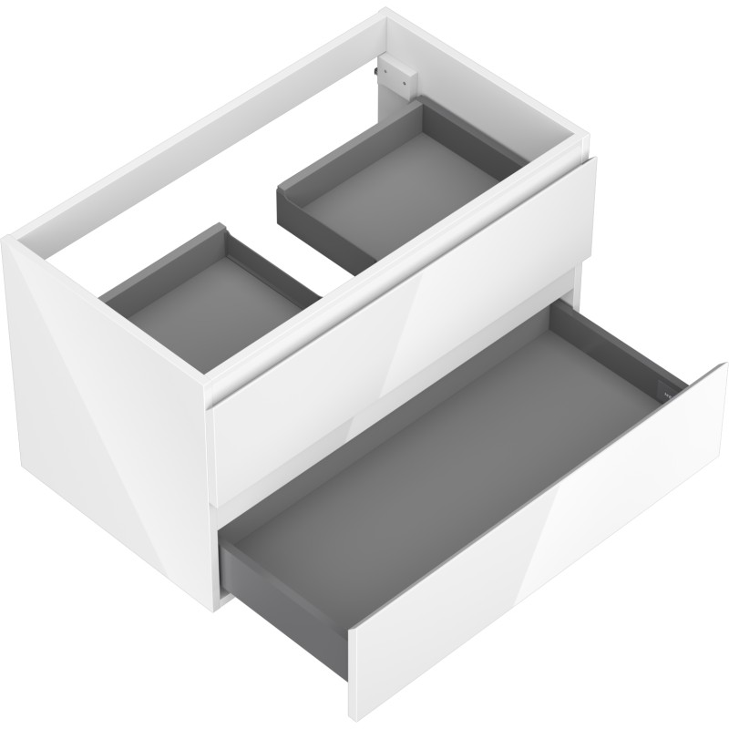 Moderní závěsná koupelnová skříňka Mexen Orio spojuje funkčnost s elegantním designem. Je vybavena dvěma prostornými zásuvkami s tichým dovíráním a plným výsuvem pro pohodlný přístup k obsahu. Korpus i čela jsou z lakované desky v lesklé bílé barvě, povrch je odolný vůči UV záření i vlhkosti. Hladké čelo skvěle zapadá do minimalistických i moderních interiérů.