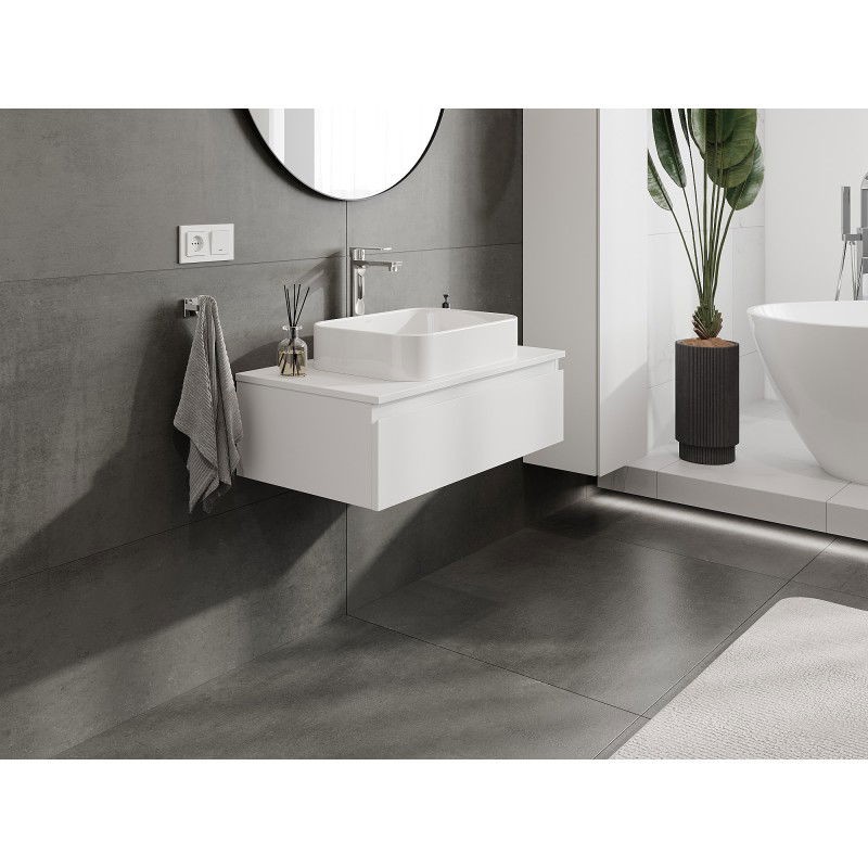 Specifikace produktu: Rozměry skříňky: Šířka: 80 cm Výška: 23,5 cm Hloubka: 46 cm Barva korpusu: Matná bílá Materiál korpusu: Lakovaná deska Barva čela: Matná bílá Materiál čela: Lakovaná MDF deska Struktura čela: Hladká Počet zásuvek: 1 Prostorná zásuvka s funkcí tlumeného dovírání Plný výsuv pro snadný přístup k obsahu zásuvky Povrch odolný vůči UV záření Rozměry pracovní desky: Šířka: 80,6 cm Hloubka: 46,5 cm Tloušťka: 1,8 cm Barva pracovní desky: Matná bílá Materiál pracovní desky: Lakovaná MDF deska Povrch odolný vůči UV záření Ideální jako podstavec pro umyvadla na desku Sestavený produkt