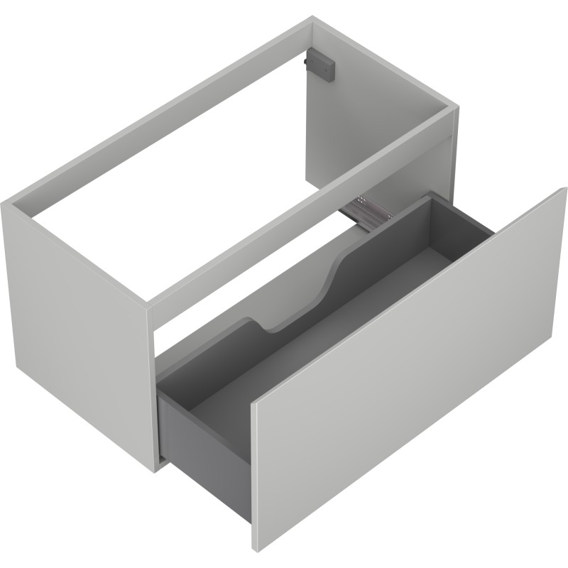 Specifikace produktu: Šířka: 90 cm Výška: 47 cm Hloubka: 46 cm Barva korpusu: Matně šedá Materiál korpusu: Lakovaná deska Barva čela: Matně šedá Materiál čela: Lakovaná MDF deska Struktura čela: Hladká Počet zásuvek: 1 Prostorná zásuvka s funkcí tlumeného dovírání Plný výsuv pro snadný přístup k obsahu zásuvky Povrch odolný vůči UV záření Kombinovatelný s pracovní deskou nebo umyvadlem Otis, Vela Smontovaný produkt