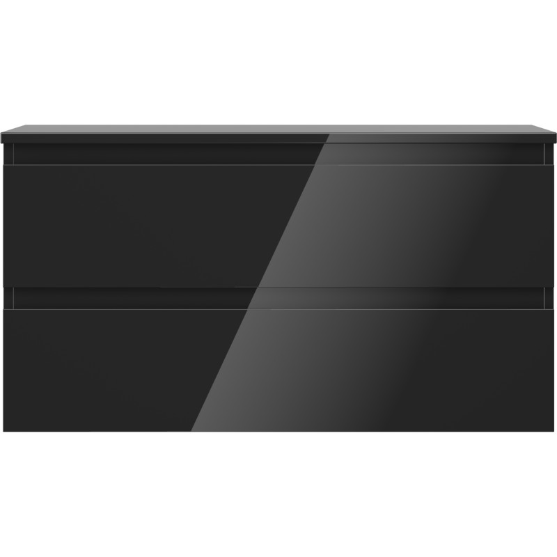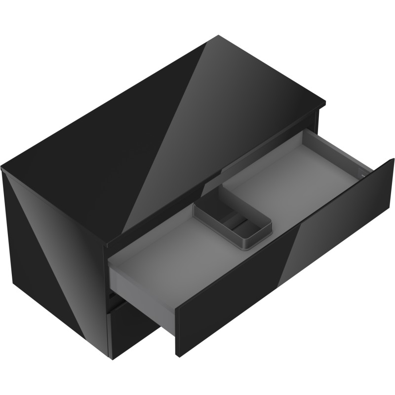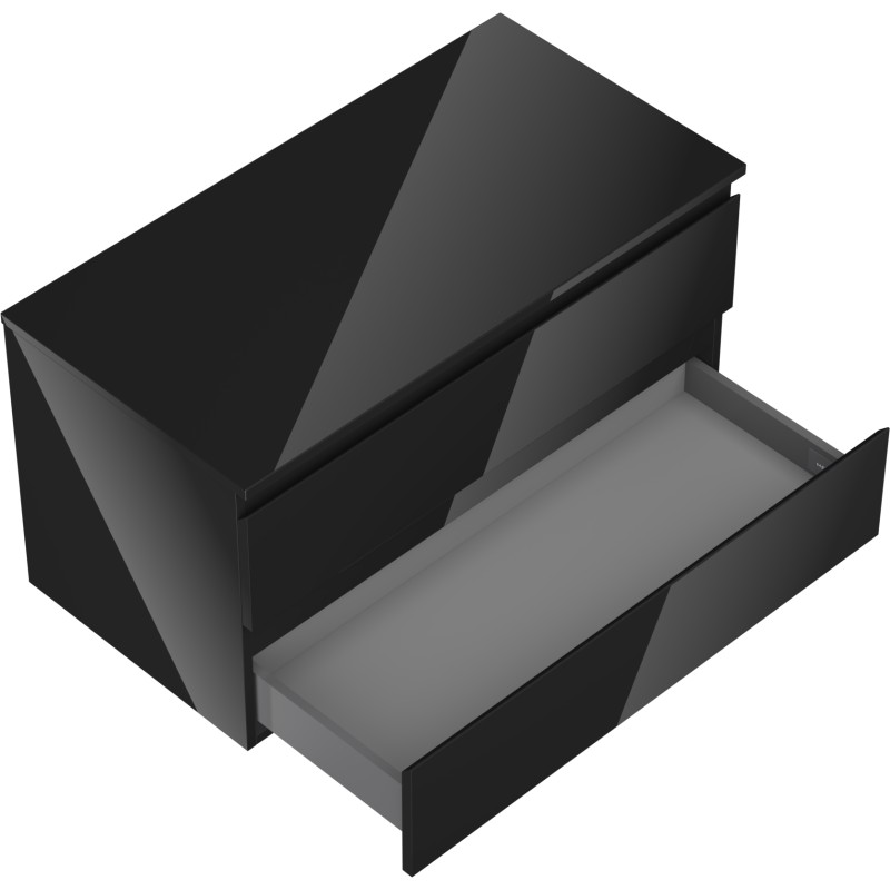 Specifikace produktu: Rozměry skříňky: Šířka: 90 cm Výška: 47 cm Hloubka: 46 cm Barva korpusu: Lesklá černá Materiál korpusu: Lakovaná deska Barva čela: Lesklá černá Materiál čela: Lakovaná MDF deska Struktura čela: Hladká Počet zásuvek: 2 Prostorná zásuvka s funkcí tichého dovírání Plný výsuv pro snadný přístup k obsahu zásuvky Povrch odolný vůči UV záření Rozměry pracovní desky: Šířka: 90,6 cm Hloubka: 46,5 cm Tloušťka: 1,8 cm Barva pracovní desky: Lesklá černá Materiál pracovní desky: Lakovaná MDF deska Povrch odolný vůči UV záření Ideální jako podstavec pro umyvadla na desku Sestavený produkt