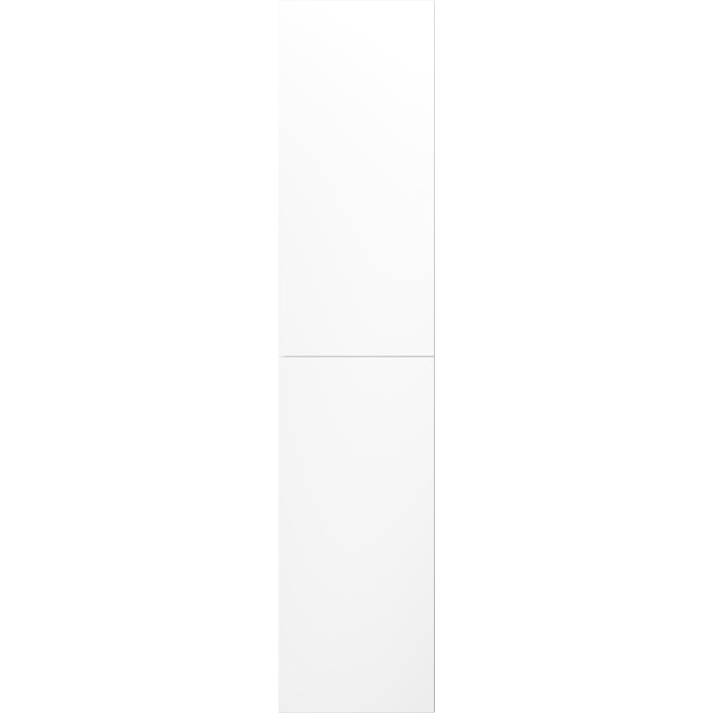 Specifikace produktu: Šířka: 35 cm Výška: 160 cm Hloubka: 30 cm Barva korpusu: Matná bílá Materiál korpusu: Lakovaná deska Barva čela: Matná bílá Materiál čela: Lakovaná MDF deska Konstrukce čela: Hladká Počet dvířek: 2 5 polic (1 pevná prostřední police a 4 nastavitelné police) Panty s funkcí tlumeného dovírání Univerzální montáž dvířek (levé/pravé) Povrch odolný vůči UV záření Smontovaný produkt