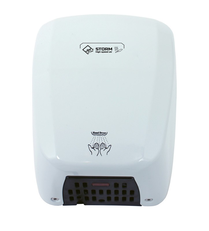 STORM představuje kombinaci kompaktních rozměrů horkovzdušných osoušečů se sušící silou tryskových vysoušečů. Robustní kovová konstrukce je vhodné i do vysoce frekventovaných míst. Osoušeč stačí naistalovat na zeď a zapomenout, žádné nákupy ubrousků, žádné přeplněné koše..