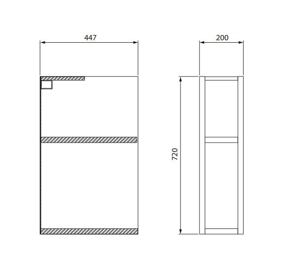 Otevřený modul pod nábytkovou desku s policí, díky kterému získáme další prostor pro dekorace nebo koupelnové doplňky. Korpus je vyroben z laminované dřevotřískové desky v barvě dub.