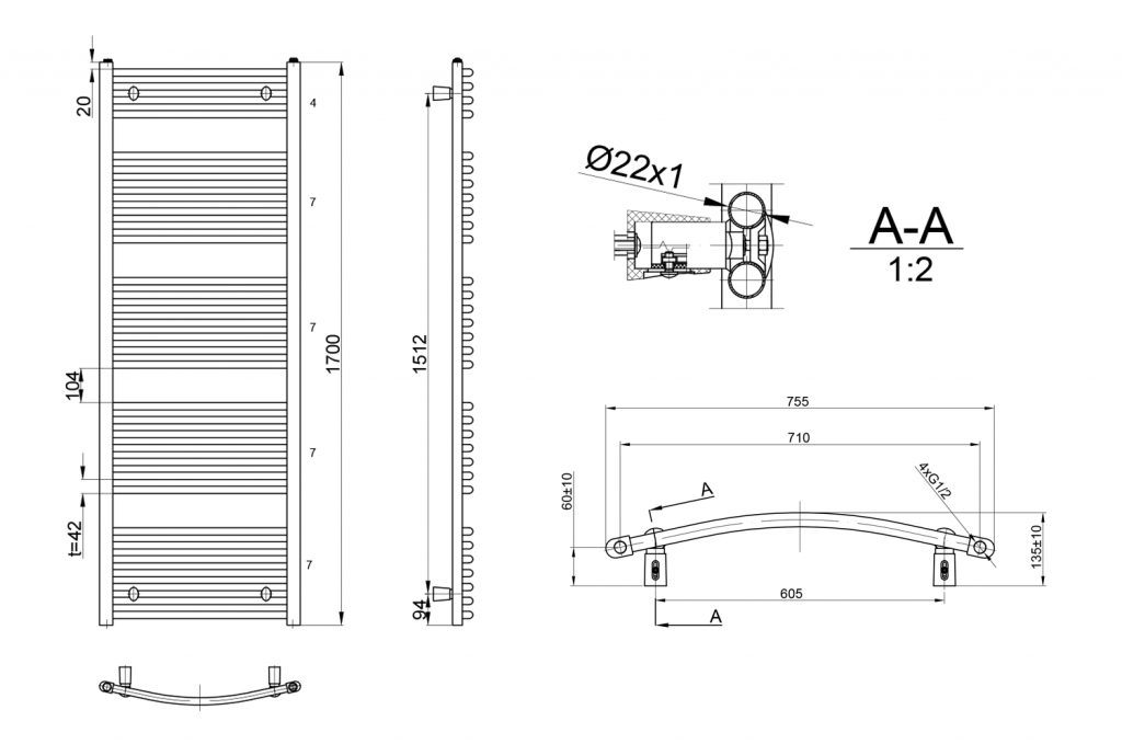 - Topná tyč a připojovací ventily nejsou součástí balení