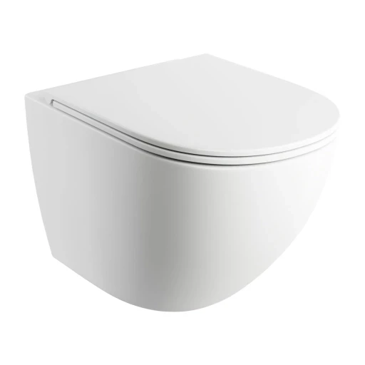 Závěsná keramická WC mísa OMNIRES OTTAWA bez oplachového kruhu RIMLESS se skrytým uchycením včetně duroplastového sedátka SLIM s komfortní technologií pomalového sklápění a easy-off /snadná demontáž usnadňuje důkladnou údržbu/.