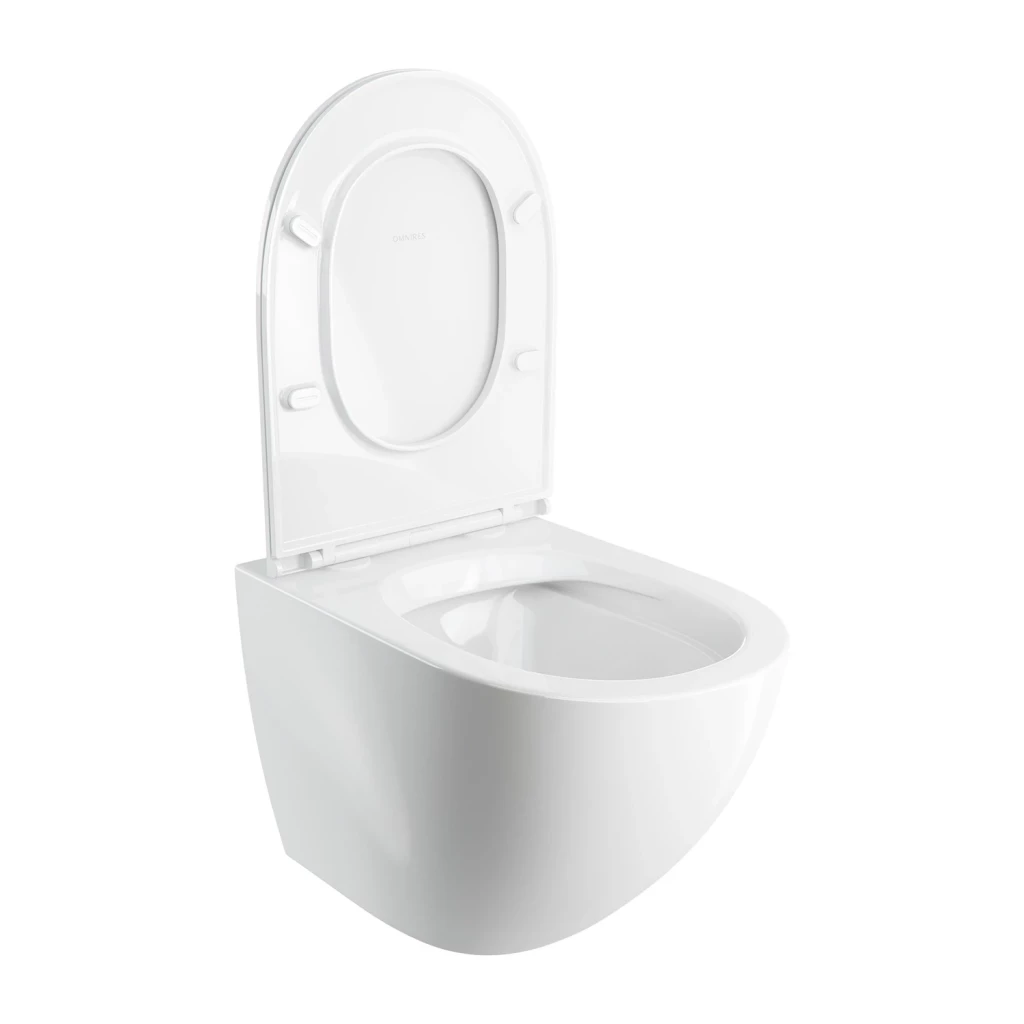 Závěsná keramická WC mísa OMNIRES OTTAWA COMFORT bez oplachového kruhu RIMLESS se skrytým uchycením včetně duroplastového sedátka SLIM s komfortní technologií pomalového sklápění a easy-off /snadná demontáž usnadňuje důkladnou údržbu/.