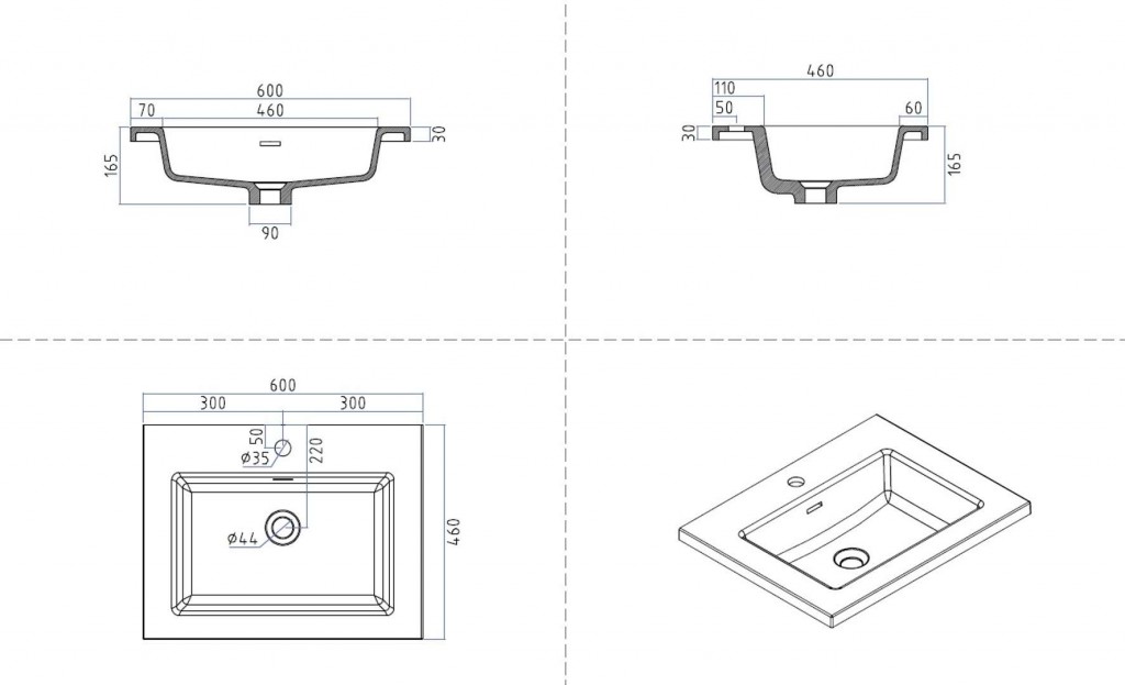 - umyvadlo s 1 otvorem pro baterii, s přepadem