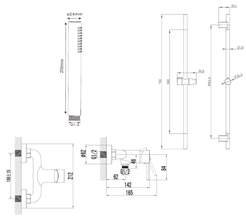 Sprchovou tyč 700 mm
